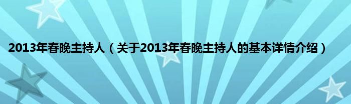 本文关于2013年春晚主持人的基本详情介绍就讲解完毕,希望对大家有所帮助。