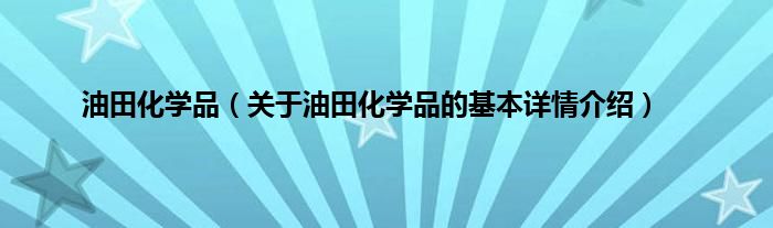 本文关于油田化学品的基本详情介绍就讲解完毕,希望对大家有所帮助。