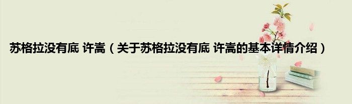 本文关于苏格拉没有底 许嵩的基本详情介绍就讲解完毕,希望对大家有所帮助。