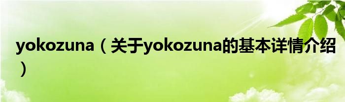 本文关于yokozuna的基本详情介绍就讲解完毕,希望对大家有所帮助。