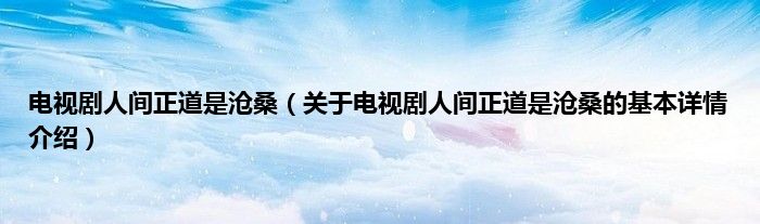 本文关于电视剧人间正道是沧桑的基本详情介绍就讲解完毕,希望对大家有所帮助。