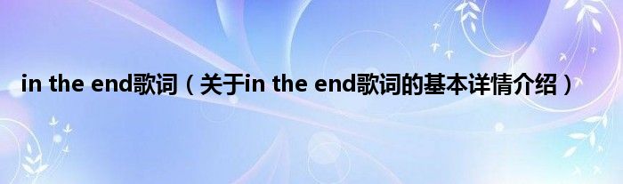本文关于in the end歌词的基本详情介绍就讲解完毕,希望对大家有所帮助。