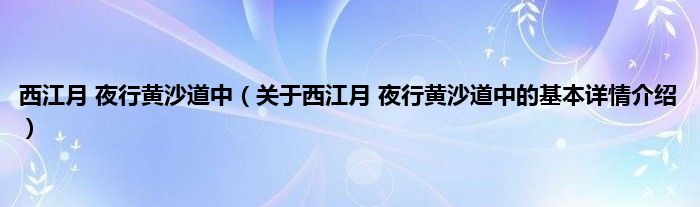 本文关于西江月 夜行黄沙道中的基本详情介绍就讲解完毕,希望对大家有所帮助。
