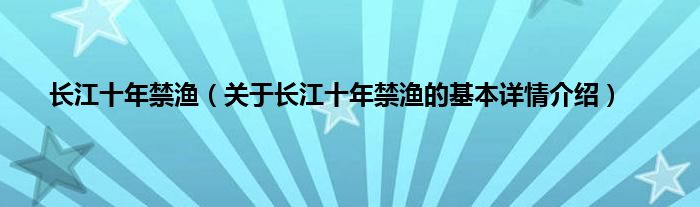 本文关于长江十年禁渔的基本详情介绍就讲解完毕,希望对大家有所帮助。