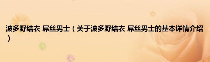 波多野结衣 屌丝男士(关于波多野结衣 屌丝男士的基本详情介绍)