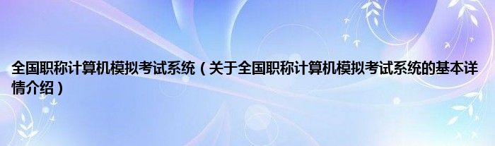 本文关于全国职称计算机模拟考试系统的基本详情介绍就讲解完毕,希望对大家有所帮助。