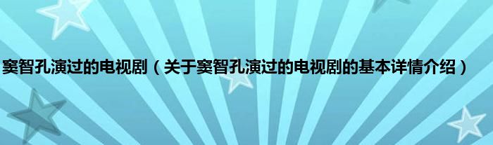 本文关于窦智孔演过的电视剧的基本详情介绍就讲解完毕,希望对大家有所帮助。
