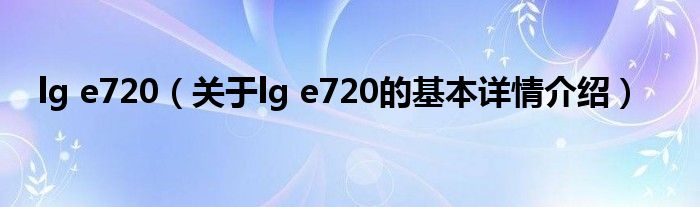 本文关于lg e720的基本详情介绍就讲解完毕,希望对大家有所帮助。