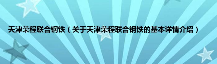 本文关于天津荣程联合钢铁的基本详情介绍就讲解完毕,希望对大家有所帮助。