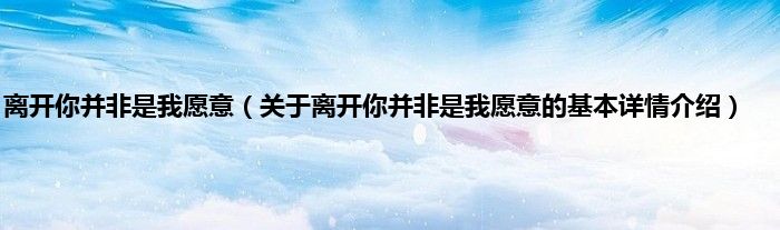 本文关于离开你并非是我愿意的基本详情介绍就讲解完毕,希望对大家有所帮助。