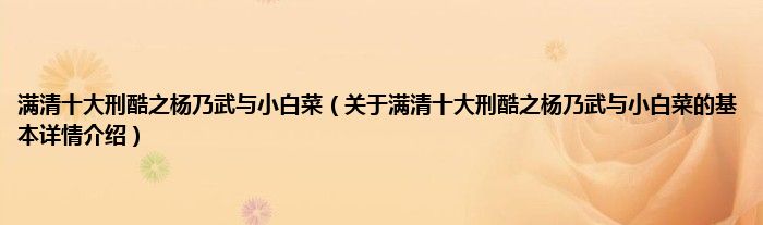 本文关于满清十大刑酷之杨乃武与小白菜的基本详情介绍就讲解完毕,希望对大家有所帮助。