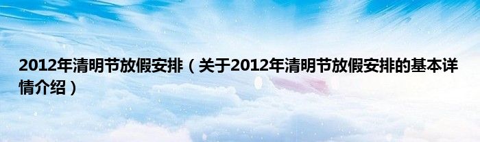 本文关于2012年清明节放假安排的基本详情介绍就讲解完毕,希望对大家有所帮助。