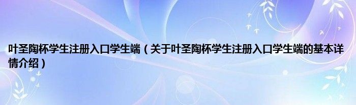 本文关于叶圣陶杯学生注册入口学生端的基本详情介绍就讲解完毕,希望对大家有所帮助。