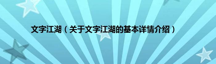 本文关于文字江湖的基本详情介绍就讲解完毕,希望对大家有所帮助。