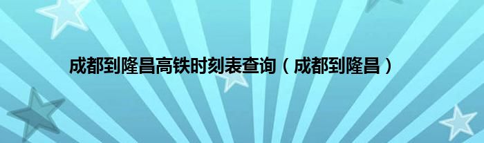 以上就是【成都到隆昌高铁时刻表查询,成都到隆昌】相关内容。