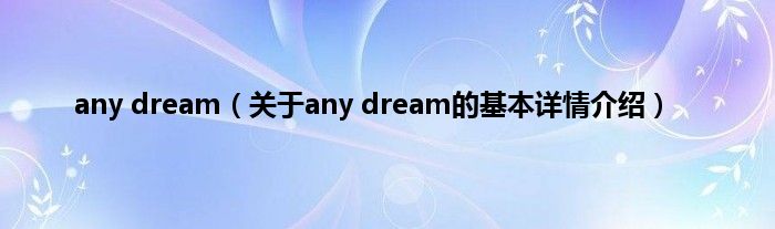 本文关于any dream的基本详情介绍就讲解完毕,希望对大家有所帮助。