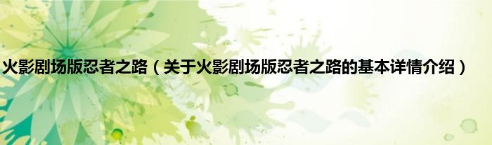 本文关于火影剧场版忍者之路的基本详情介绍就讲解完毕,希望对大家有所帮助。