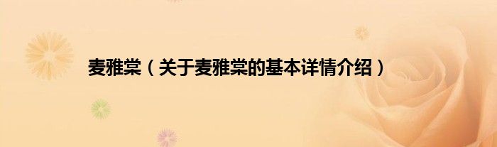 本文关于麦雅棠的基本详情介绍就讲解完毕,希望对大家有所帮助。