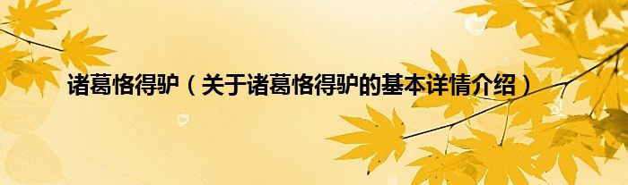本文关于诸葛恪得驴的基本详情介绍就讲解完毕,希望对大家有所帮助。