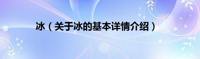 本文关于冰的基本详情介绍就讲解完毕,希望对大家有所帮助。