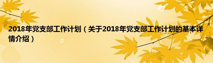 本文关于2018年党支部工作计划的基本详情介绍就讲解完毕,希望对大家有所帮助。