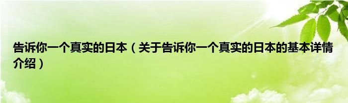 大家好我是小蝌蚪,告诉你一个真实的日本,关于告诉你一个真实的日本的基本详情介绍很多人还不知道,那么现在让我们一起来看看吧!