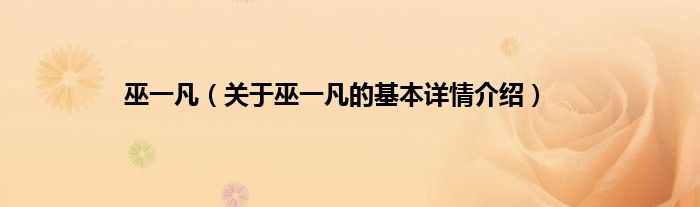 本文关于巫一凡的基本详情介绍就讲解完毕,希望对大家有所帮助。