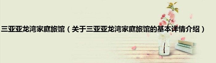 本文关于三亚亚龙湾家庭旅馆的基本详情介绍就讲解完毕,希望对大家有所帮助。