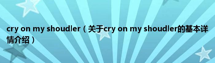 本文关于cry on my shoudler的基本详情介绍就讲解完毕,希望对大家有所帮助。