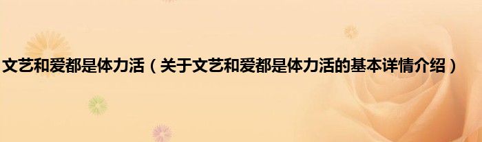 本文关于文艺和爱都是体力活的基本详情介绍就讲解完毕,希望对大家有所帮助。