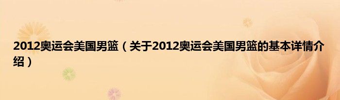 本文关于2012奥运会美国男篮的基本详情介绍就讲解完毕,希望对大家有所帮助。