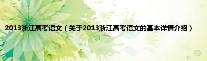 本文关于2013浙江高考语文的基本详情介绍就讲解完毕,希望对大家有所帮助。