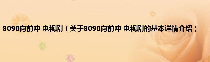 本文关于8090向前冲 电视剧的基本详情介绍就讲解完毕,希望对大家有所帮助。