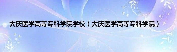 以上就是【大庆医学高等专科学院学校,大庆医学高等专科学院】相关内容。