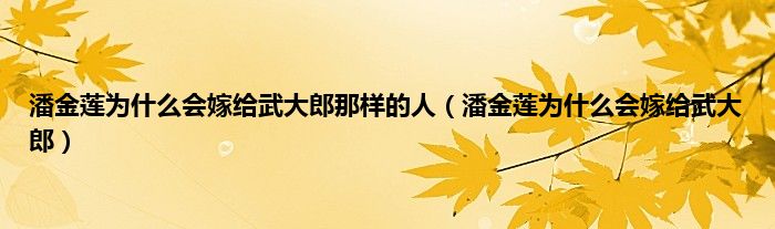 以上就是【潘金莲为什么会嫁给武大郎那样的人,潘金莲为什么会嫁给武大郎】相关内容。