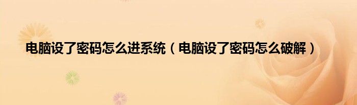 以上就是【电脑设了密码怎么进系统,电脑设了密码怎么破解】相关内容。