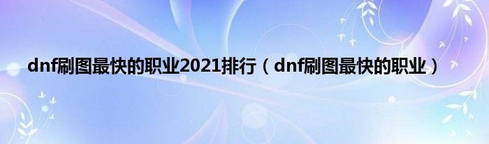 以上就是【dnf刷图最快的职业2021排行,dnf刷图最快的职业】相关内容。