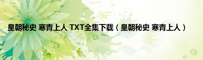 皇朝秘史寒青上人TXT全集下载(皇朝秘史寒青上人)