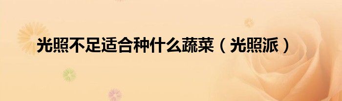 以上就是【光照不足适合种什么蔬菜,光照派】相关内容。