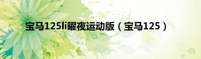 以上就是【宝马125li曜夜运动版,宝马125】相关内容。