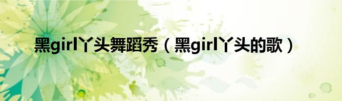 大家好,小问来为大家解答以上问题。黑girl丫头舞蹈秀,黑girl丫头的歌这个很多人还不知道,现在让我们一起来看看吧!