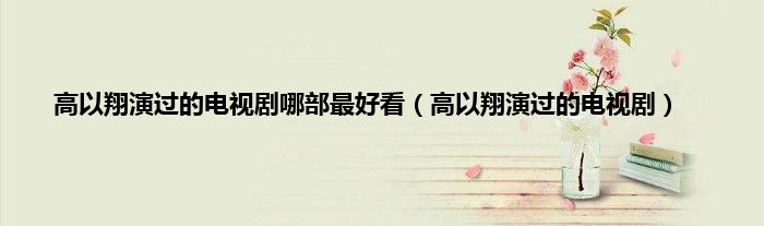 高以翔演过的电视剧哪部最好看(高以翔演过的电视剧)