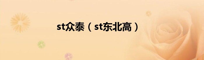 大家好,小问来为大家解答以上问题。st众泰,st东北高这个很多人还不知道,现在让我们一起来看看吧!