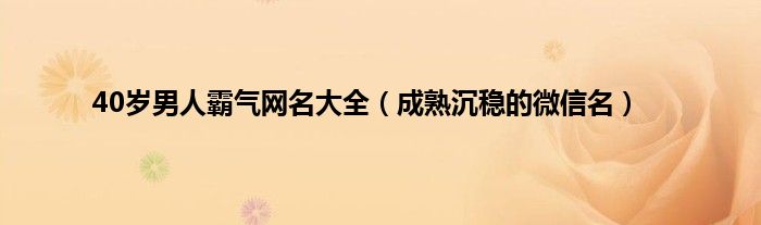 本文40岁男人霸气网名大全,成熟沉稳的微信名到此分享完毕,希望对大家有所帮助。