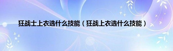 狂战士上衣选什么技能(狂战上衣选什么技能)
