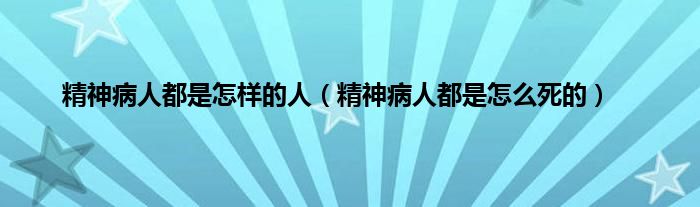 以上就是【精神病人都是怎样的人,精神病人都是怎么死的】相关内容。