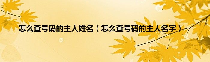 以上就是【怎么查号码的主人姓名,怎么查号码的主人名字】相关内容。