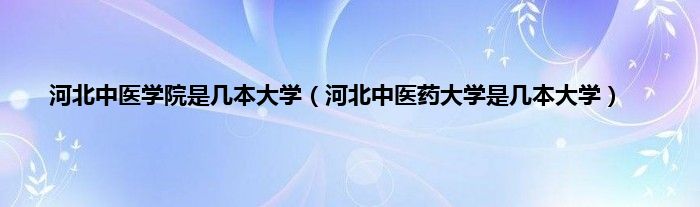 本文,河北中医学院是几本大学,河北中医药大学是几本大学到此就分享完毕,希望对大家有所帮助。