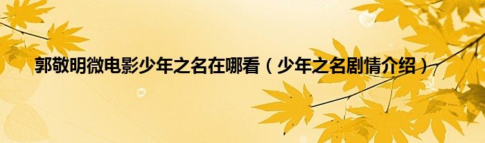 本文,郭敬明微电影少年之名在哪看,少年之名剧情介绍到此就分享完毕,希望对大家有所帮助。