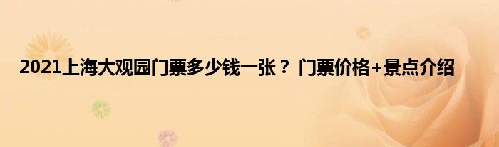本文,2021上海大观园门票多少钱一张?,门票价格+景点介绍到此就分享完毕,希望对大家有所帮助。